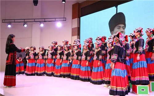研学活动现场,峨山县双江中学师生通过多元活动展示了学校彝族特色音乐、舞蹈、手工等课程及学校自主空间和建设,呈现了学生全面发展方面成果。