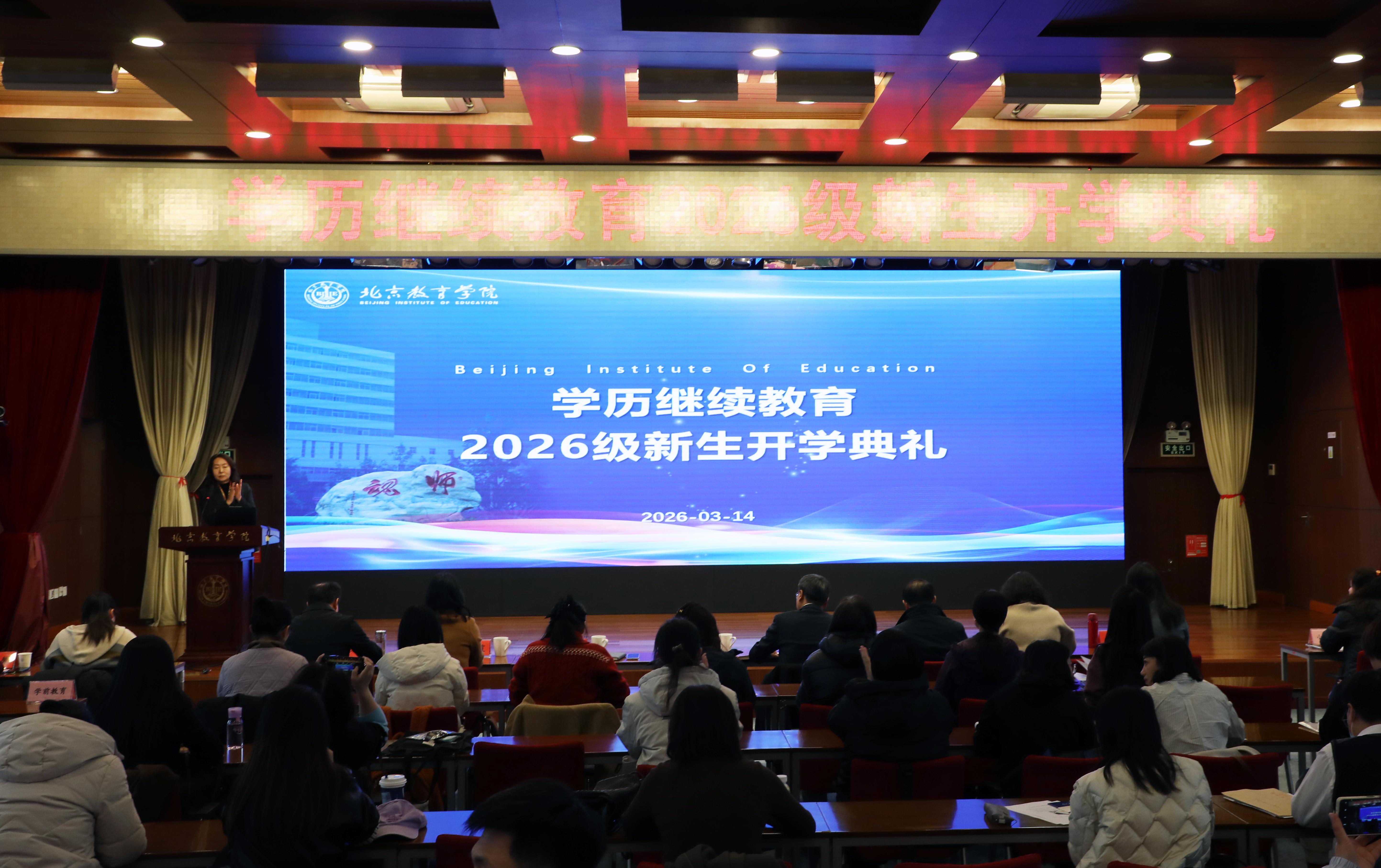 为深入贯彻落实立德树人根本任务,充分发挥开学典礼作为思政育人重要阵地的作用,3月14日,北京教育学院举办学历继续教育2026级新生开学典礼,为125名新生带来了一堂站位高远、导向鲜明、浸润人心的“大思政课”。学院党委常委、副院长肖汶出席会议并讲话。党委学员工作部/教务处及相关二级学院负责人、各学历专业负责人、教学管理人员与全体新生参加典礼。开学典礼由党委学员工作部/教务处处长张金秀主持。